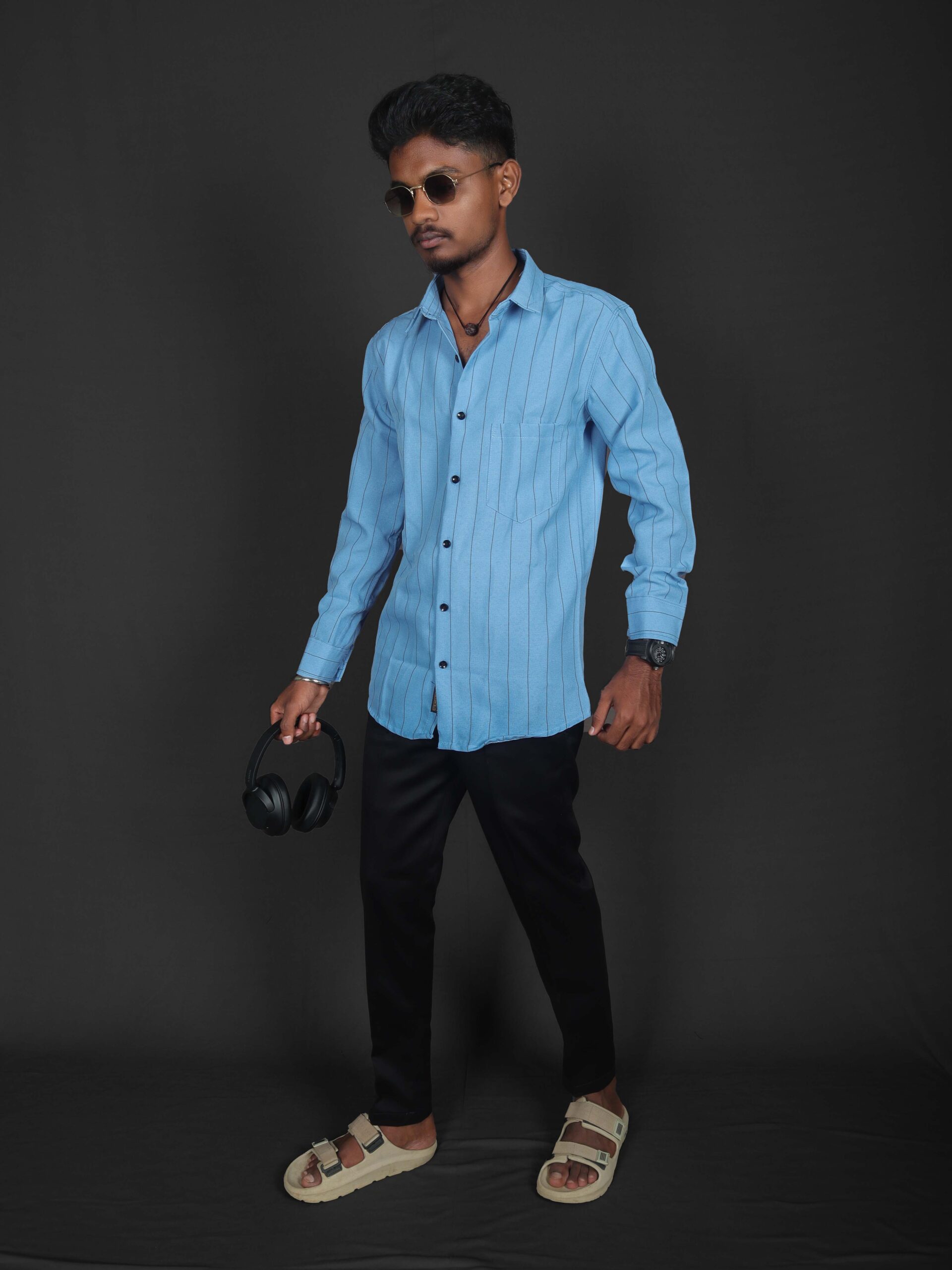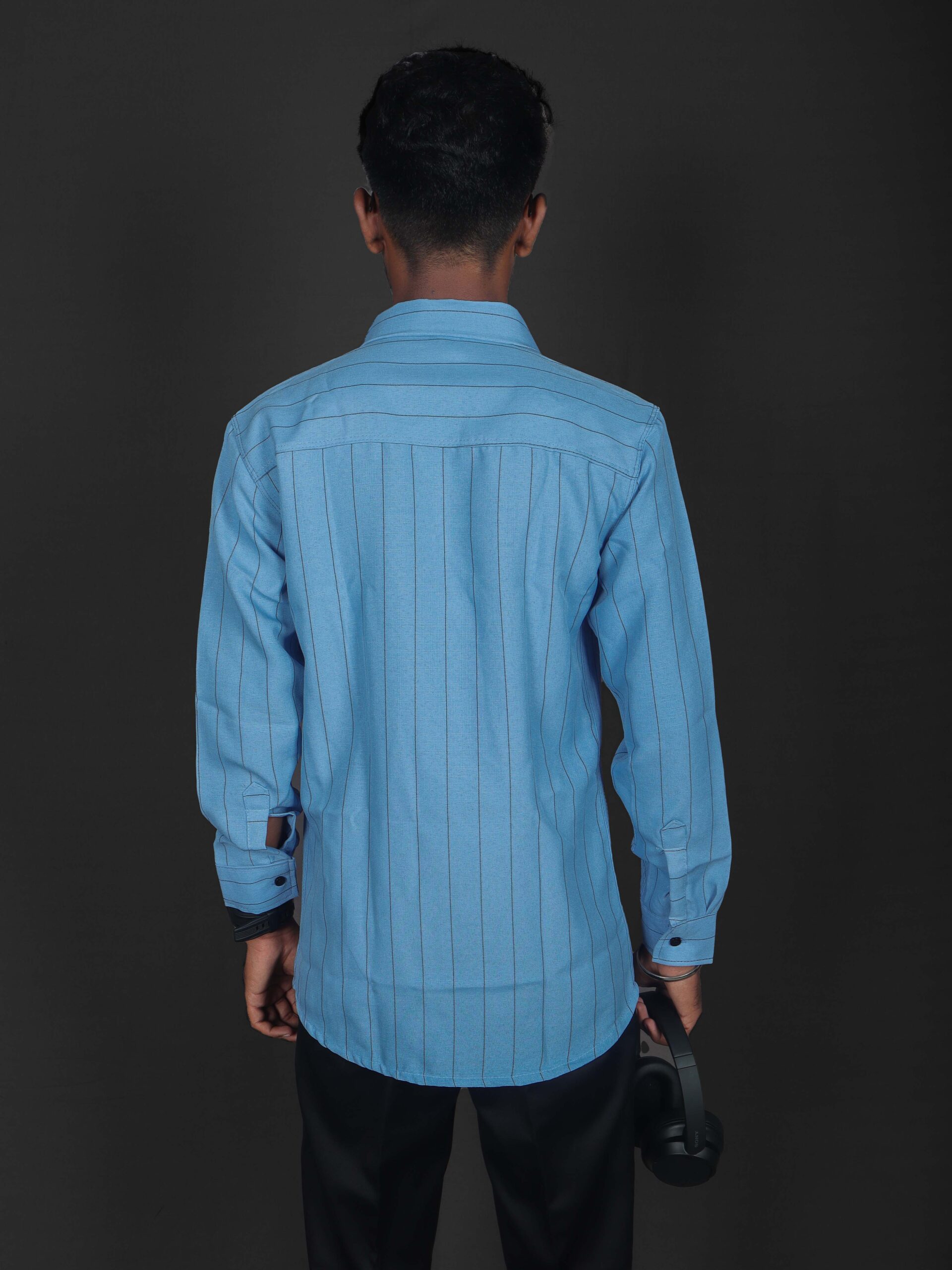 NammaOutfit Corian Striped Shirt –CADET BLUE color crafted from smooth Corian fabric. Perfect for both casual and formal occasions with a sleek, comfortable fit.