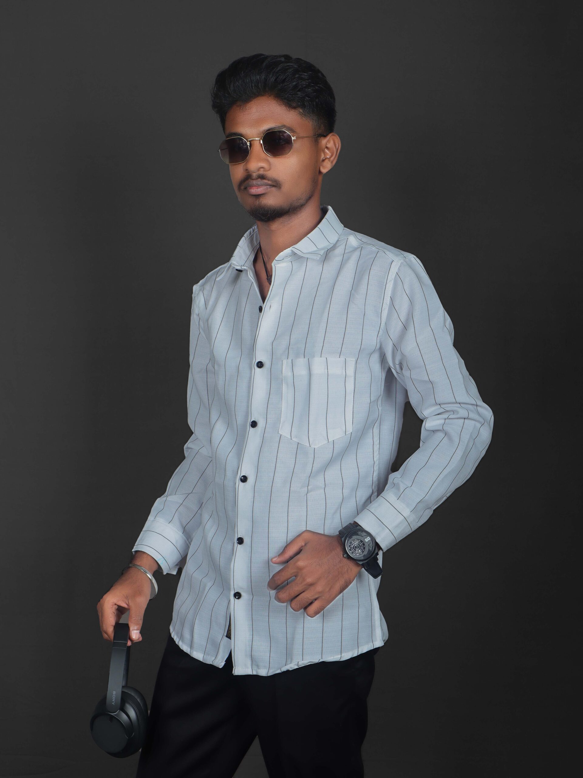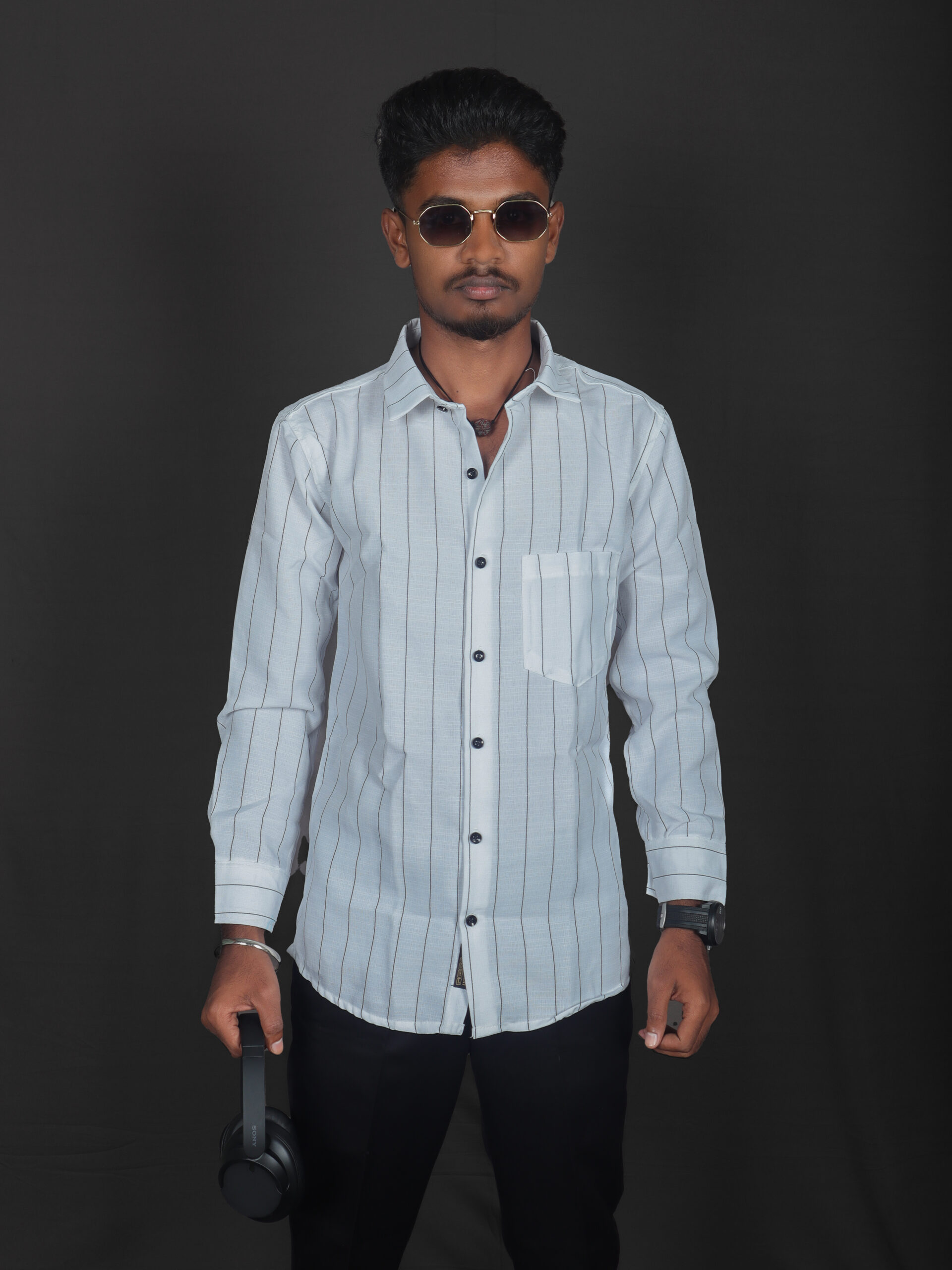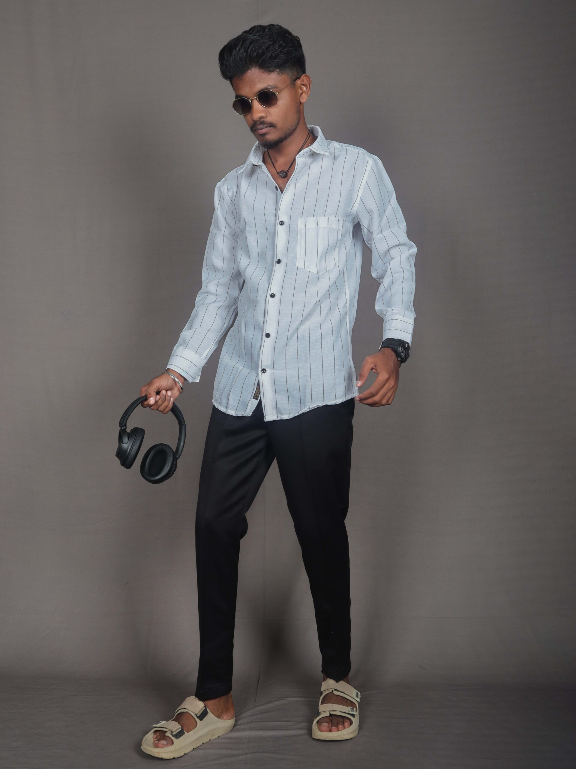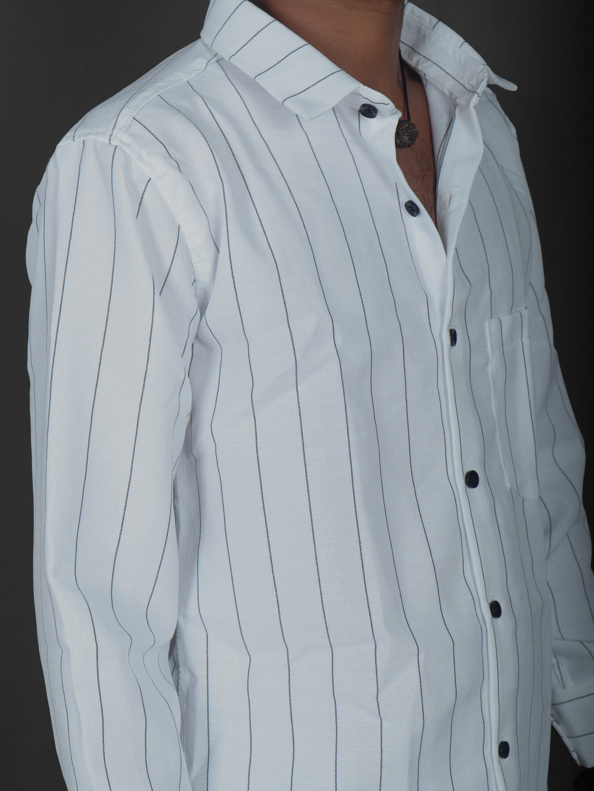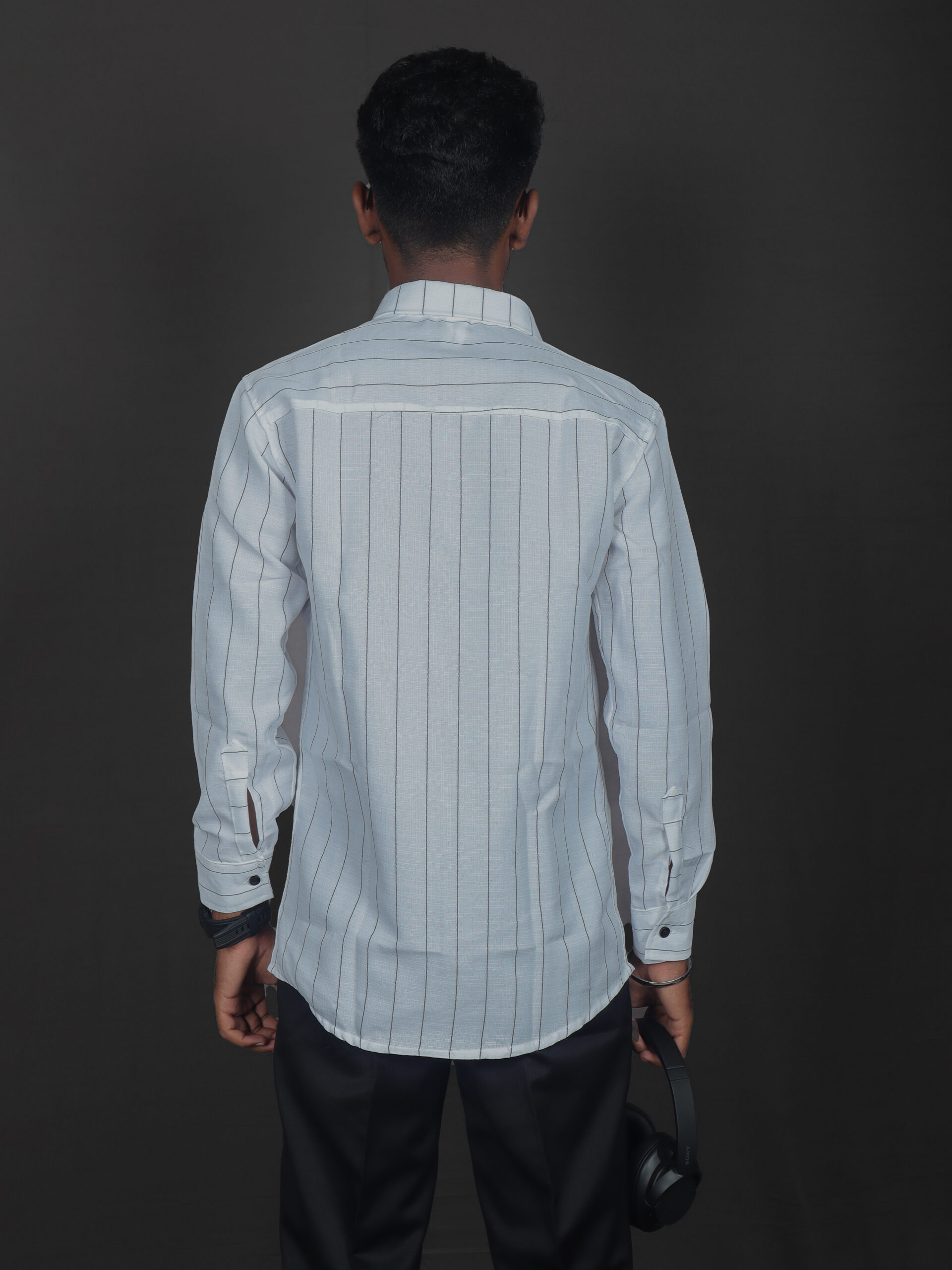NammaOutfit Corian Striped Shirt –WHITE color crafted from smooth Corian fabric. Perfect for both casual and formal occasions with a sleek, comfortable fit.